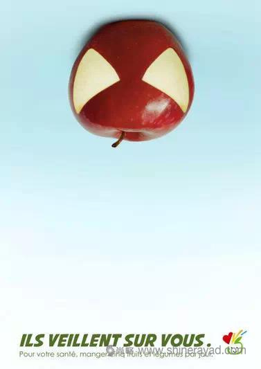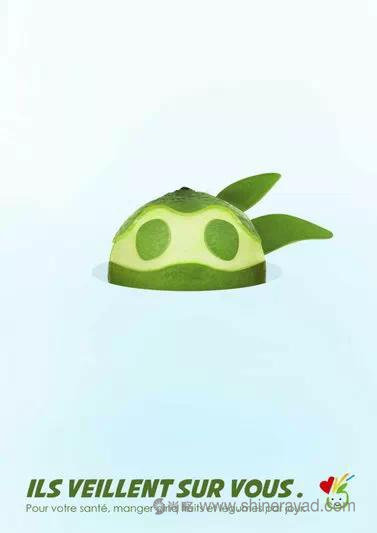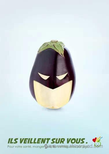 法國PNNS公益廣告:一組欣賞性和趣味性都不錯的平面系列。蘋果原來是蜘蛛俠,青檸變身忍者神龜,茄子是扣了帽子的蝙蝠俠,你們會不會藏得太深了!