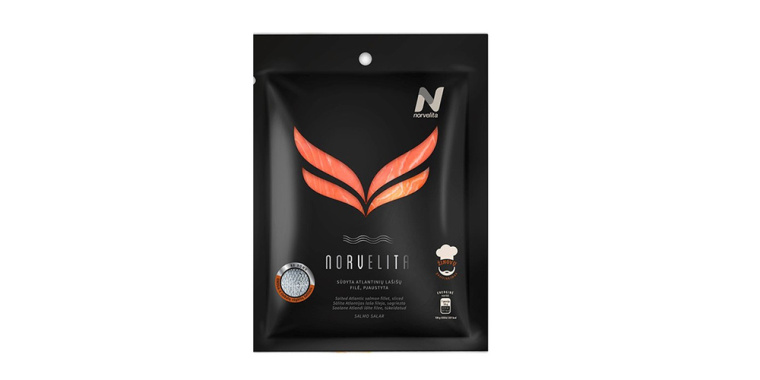 尚略上海包裝設計公司佳作欣賞——NORVELITA 三文魚鮭魚包裝設計作品,維爾紐斯包裝設計公司使用對比色彩為norvelita重新進行了包裝設計,一個生動的現實圖片把鮭魚尾本呈現成包裝設計真正的英雄。黑色的包裝構圖設計提供了對三文魚肉的清晰度感官,一個完美的背景,給人一種鶴立雞群的效果,可以看到遠處。銀和橙色的顏色-典型的鮭魚-被用作字體顏色捆綁整個設計在一起。
