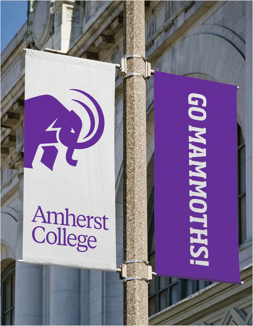 隨后,Pentagram品牌設計公司被委托設計新的Amherst猛犸象圖標標志,并為學院改造運動和體制的身份系統。兩個版本的猛犸象馬克被創造出來了,一個完整的版本描述了這個生物的前進,一個版本的猛犸象的頭部和它的獨特的象牙。