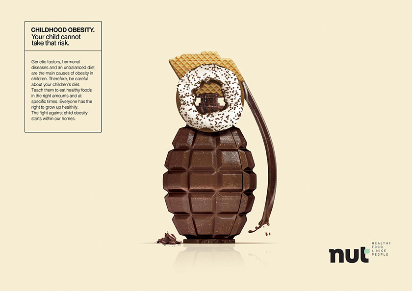 知名堅果品牌nut,從當前愈發讓家長擔憂的兒童肥胖癥出發,推出一組平面廣告設計。用于說服家長們積極改善孩子們的飲食結構,把nut產品加入食品采購清單。