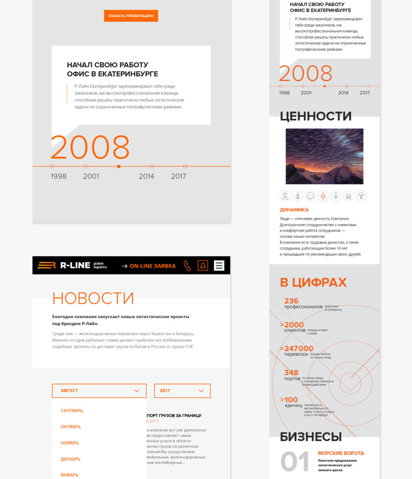 R-Line集團運輸物流公司新響應式網站設計,橙色線條+幾何圖片