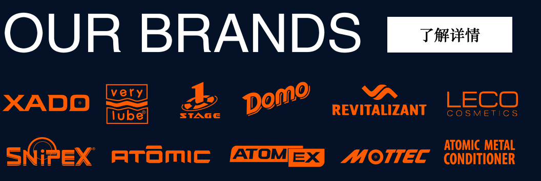 XADO化工集團的主要品牌。1991年注冊。1999年,第一批使用XADO商標的產品出現在汽車商店。如果你在包裝上看到了XADO的標志,這意味著這是一個創新的產品,包含了活力。它是XADO商標的主要特征和獨特的標志。目前,XADO是最大的創新汽車護理產品和潤滑油制造商之一。為修復和修復任何類型的車輛和機制而設計的XADO產品,可以在全球80多個國家和各大洲購買。
