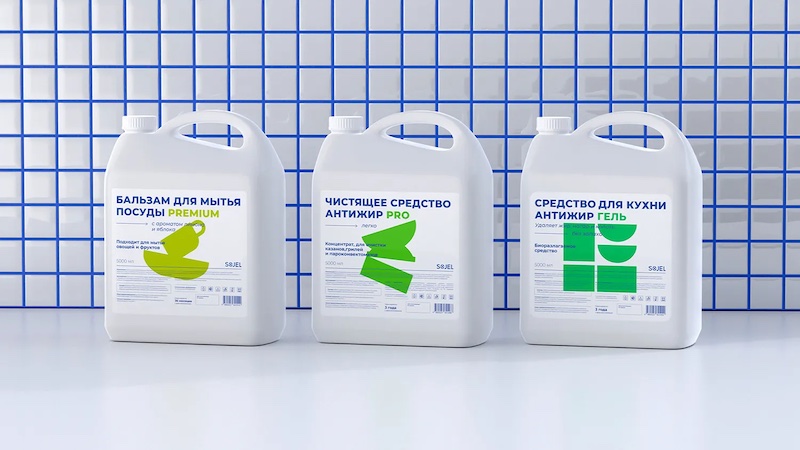 包裝設計公司面臨的任務是開發Sojel的轉型產品——家庭化學家庭清潔劑產品。該公司希望放棄舊品牌定位,進入新的市場,達到新的目標受眾。擴大產品種類和新產品的出現意味著放棄了當時所有現有的圖形。